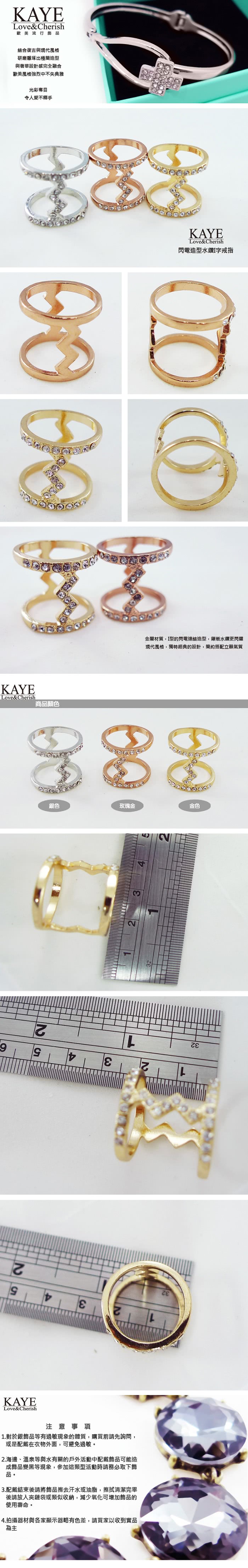 【Kaye歐美流行飾品】閃電造型水鑽I字戒指 評價